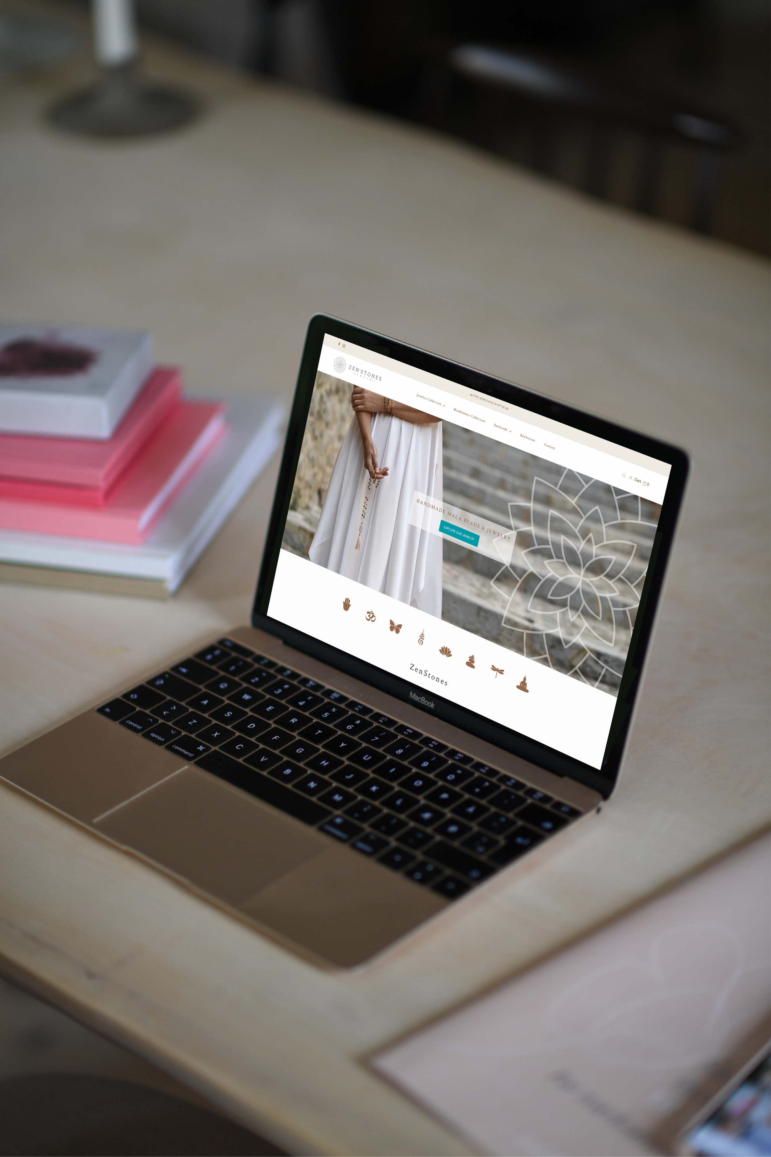 Vi har udviklet et selvstændigt symbol, unikt mønstre, nye farver, fotos og tekster til brug på det nye re-design af Shopify hjemmesiden.